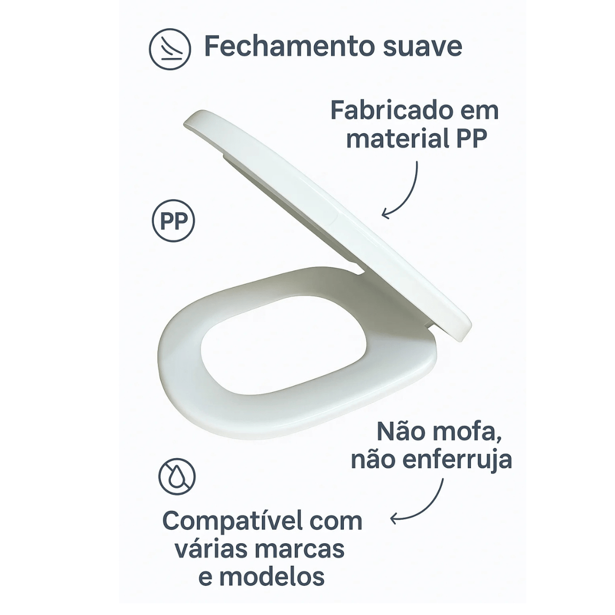 **ATENÇÃO: Antes da compra verifique o modelo do seu vaso. Caso não seja dos modelos compatíveis o formato ficará diferente ou não será possível instalar. Esse modelo NÃO É ALMOFADADO.