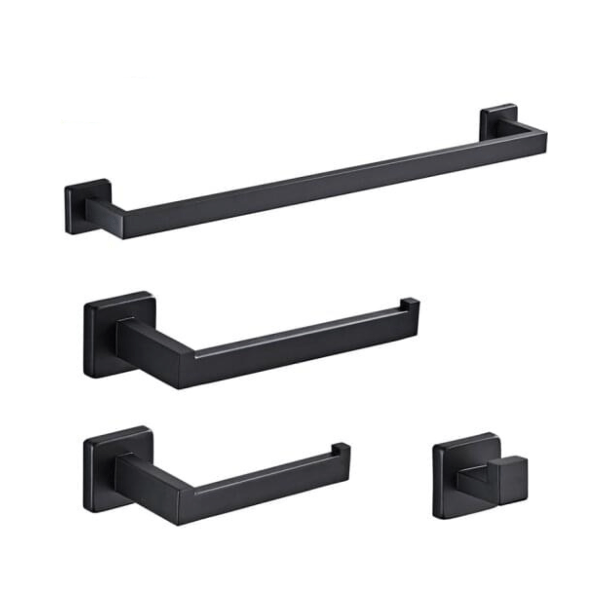 Kit Acessórios Banheiro Quadrado 4 Pcs Inox 304 Preto Fosco